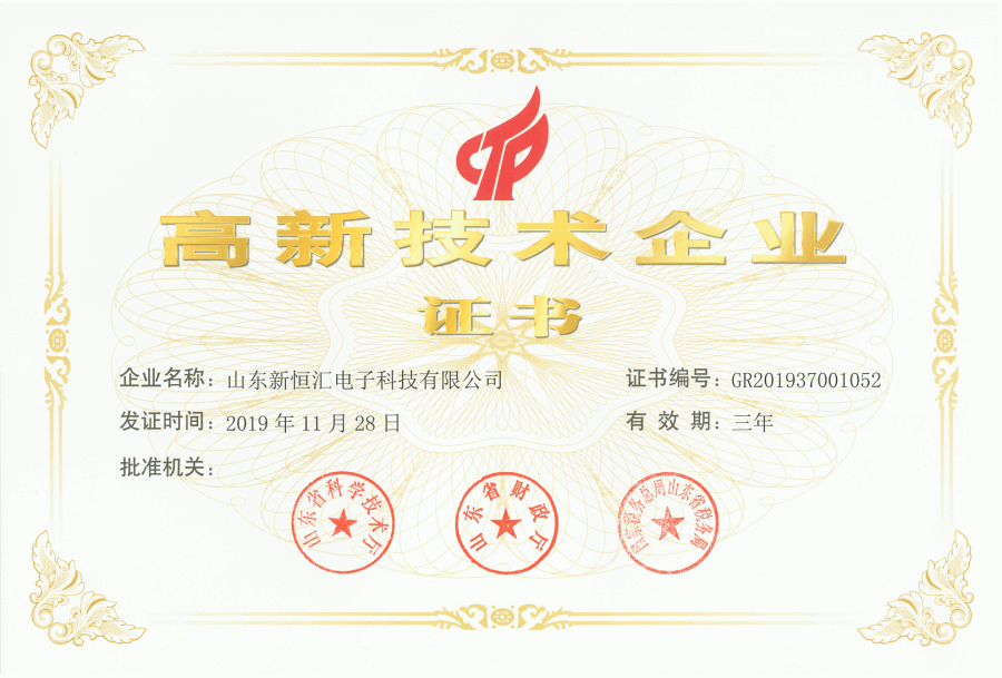憑借著行業領先的生產設備和研發環境,高效的生產能力和高水平的工藝技術以及完善的上下游產業鏈配套,新恒匯曾先后榮獲“淄博市創新型高成長企業50強”、“淄博市工業企業30強”、“山東省高新技術企業”等行業獎項和榮譽,公司超大規模集成電路用高精度引線框架研發及產業化項目入選“山東省重點研發計劃重大科技創新工程項目”。