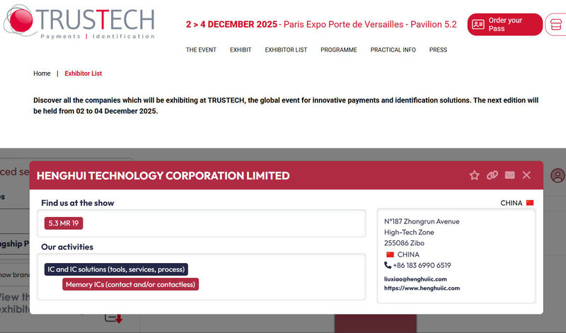 2025年12月2日至4日,TRUSTECH 2025在法國巴黎凡爾賽門展覽中心5.2號館舉行。TRUSTECH是全球支付技術(shù)與數(shù)字安全領(lǐng)域的國際性盛會,致力于創(chuàng)新支付和身份識別解決方案。新恒匯電子股份有限公司攜全球領(lǐng)先的集成電路解決方案參展,涵蓋智能卡封裝材料、工藝、技術(shù)和服務(wù)等方面,吸引了眾多業(yè)內(nèi)人士的關(guān)注,為企業(yè)展示實力、建立合作提供契機,也有望推動行業(yè)發(fā)展,助力全球支付和身份識別領(lǐng)域創(chuàng)新。