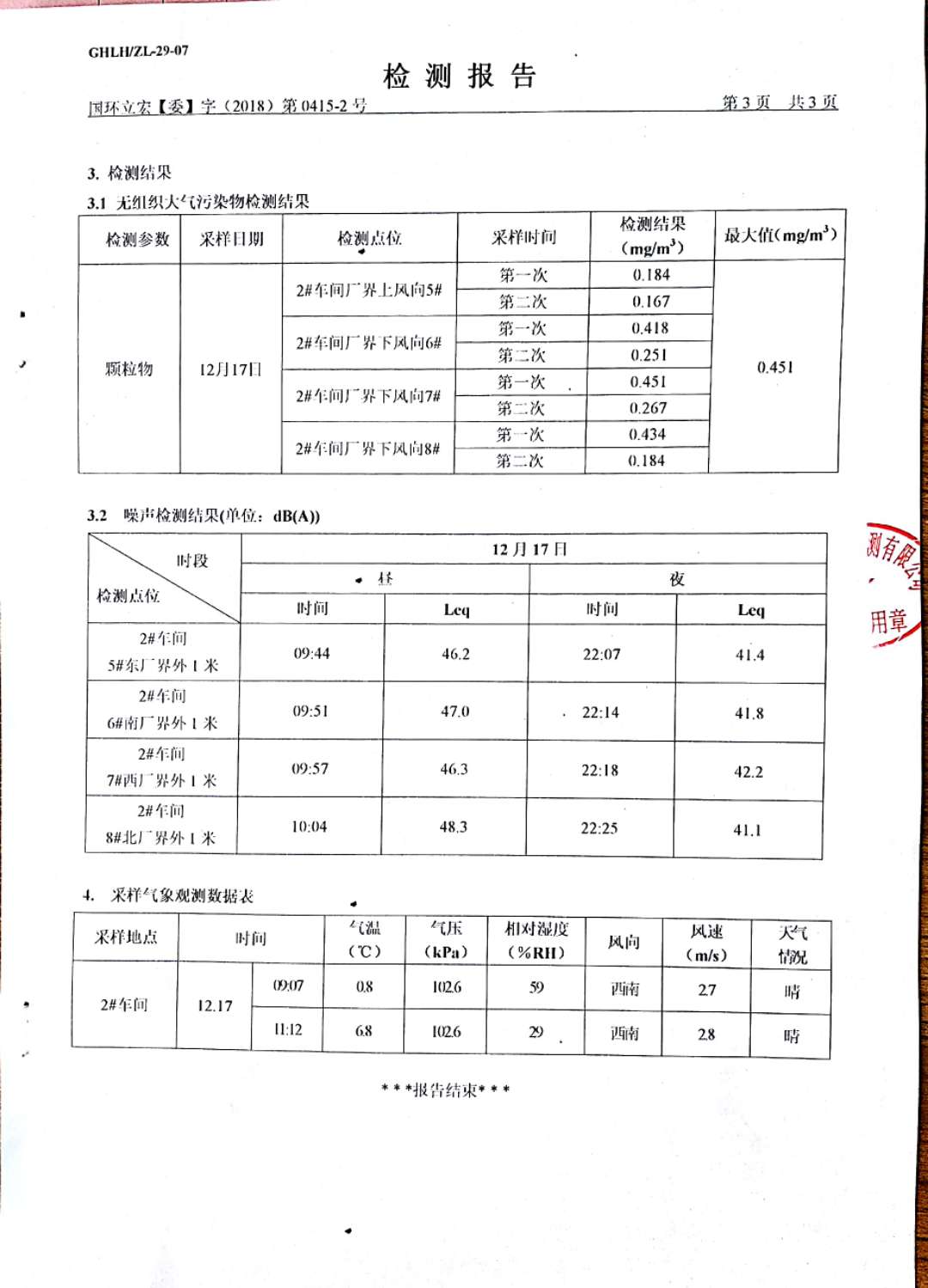 大氣污染物、噪聲檢測--2#車間